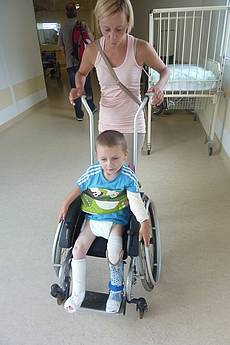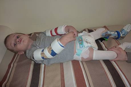 Jakub benötigt sein Leben lang intensive orthopädische Behandlung sowie orthopädietechnische Versorgung. Ohne diese Maßnahmen wird seine körperliche Entwicklung berhindert, zumindest aber sehr stark verzögert werden.
