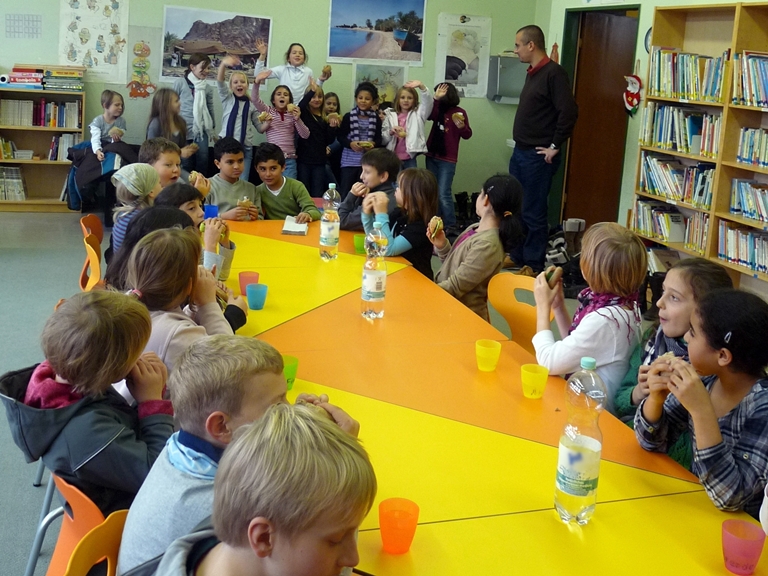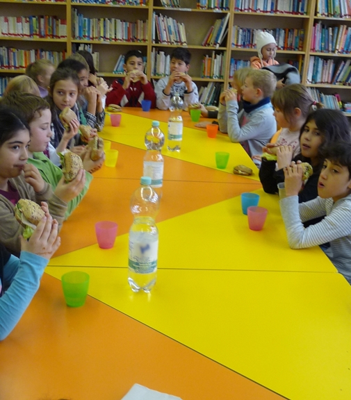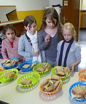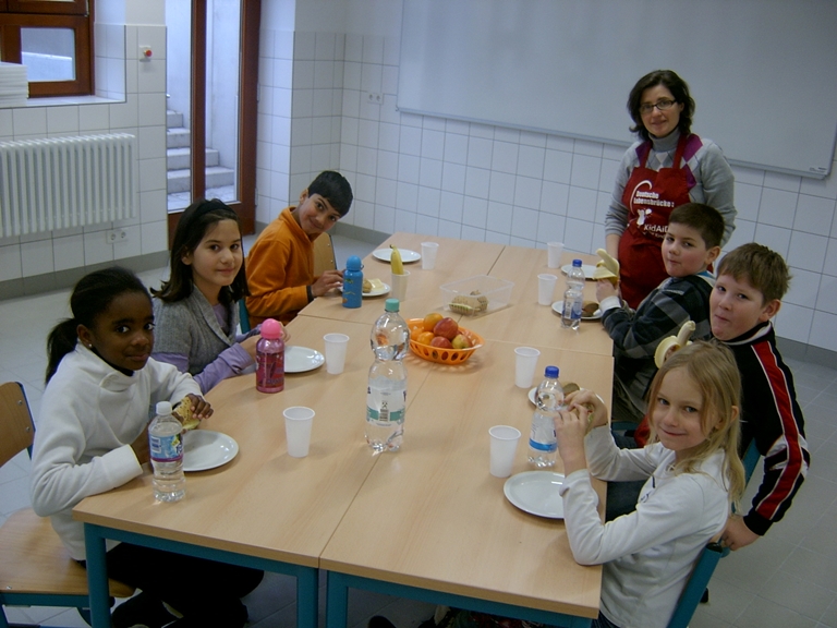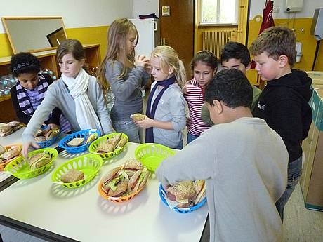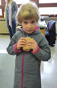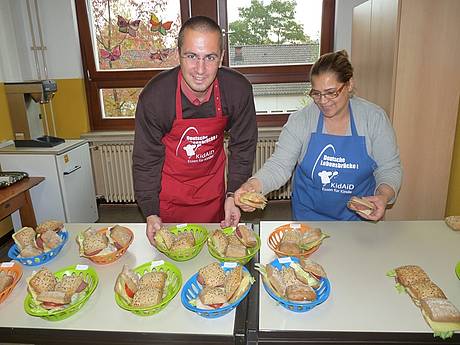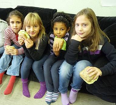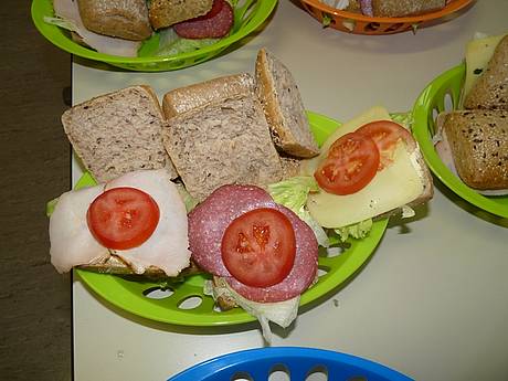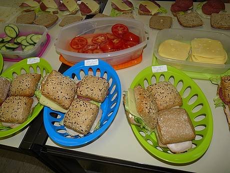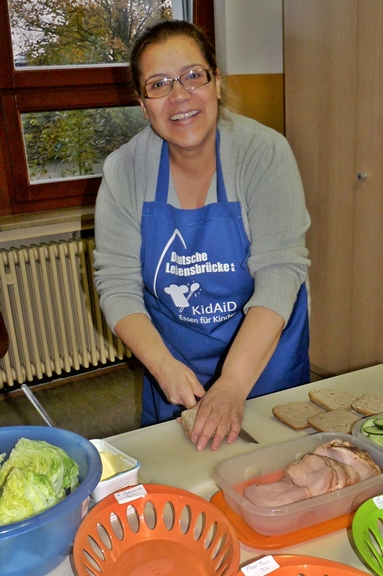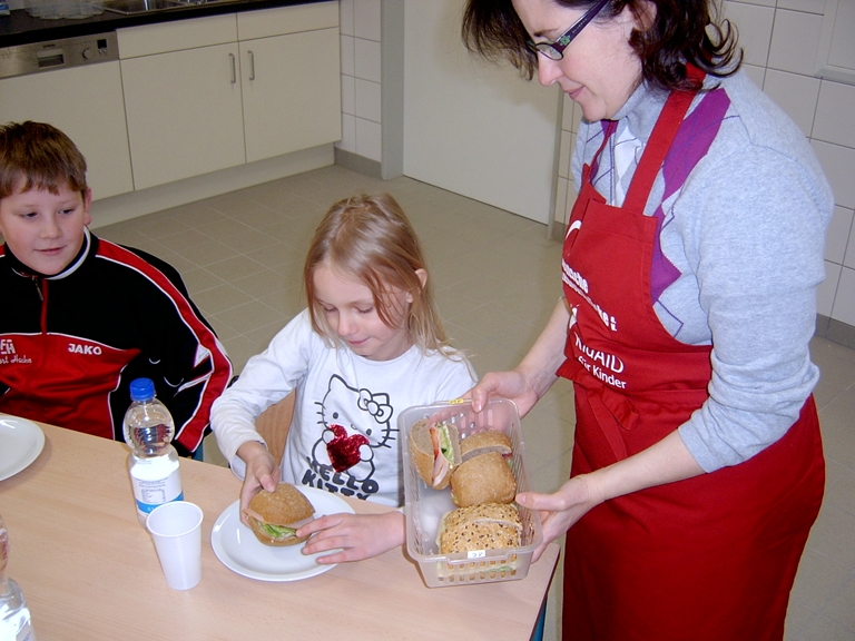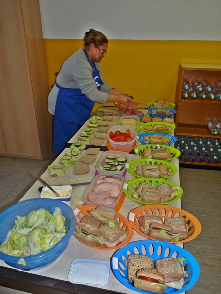 Deshalb helfen wir mit dem Frühstücksklub. Für 40 Kinder gibt es jeden Tag leckere belegte Brötchen, frisches Obst und Rohkost, sowie ausreichend zu trinken. Unterstützt wird unsere Arbeit von Maria Arcuri. Sie bereitet die Brötchen zu und verteilt sie an die Kinder.